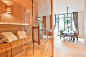 Habitaciones: 1Guests will have a special experience as the apartment provides a sauna. Featuring a private entrance, this spacious apartment also consists of 1 bedroom, a seating area and 2 bathrooms with a walk-in shower and a hairdryer. The well-equipped kitchen has a stovetop, a refrigerator, a dishwasher and kitchenware. The unit features a washing machine, garden views, a terrace and wine/champagne is provided for guests. The unit offers 2 beds.