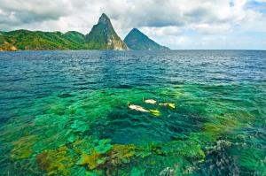 El Anse Chastanet Resort se encuentra en un frondoso entorno tropical, entre las playas de Anse Chastanet y Anse Mamin, y brinda vistas fantásticas al mar Caribe y a las montañas Petit y Gros Piton.