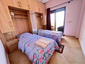 El apartamento cuenta con balcón y vistas a la ciudad, y dispone de 2 dormitorios, una sala de estar, TV de pantalla plana, una cocina equipada con nevera y horno, y 1 baño con ducha. El apartamento Aourir Beachfront Surf Apartment dispone de toallas y ropa de cama.