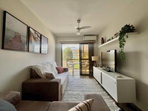 L'appartamento climatizzato di la struttura include 2 camere da letto, cucina con forno e frigorifero, e 2 bagni. La dotazione di Ap 22_Charmoso e confortável 2 quartos c/ AC include una TV.