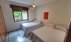 Klimatizovaný apartmán v Ap confortável - Praia Enseada má 2 ložnice, 2 koupelny a kuchyň s troubou a lednicí. Koupelna je vybavená sprchou.
