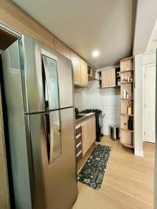 Questo appartamento con aria condizionata comprende 1 camera da letto, TV a schermo piatto e cucina con frigorifero. Lenzuola e asciugamani sono a vostra disposizione presso Ap estiloso e confortável.