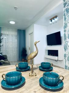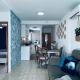 El apartamento con aire acondicionado de Apart Palm Garden consta de 2 dormitorios, sala de estar, cocina equipada con nevera y cafetera, y 1 baño con ducha y secador de pelo. El apartamento el alojamiento dispone de toallas y ropa de cama.