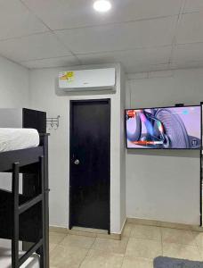 Klimatyzowany apartament APARTAESTUDIO 4 PERSONAS - AIRE ACONDICIONADO - Mínimo 3 noches de estadía posiada sypialnię i telewizor. Na miejscu znajduje się kuchnia.
