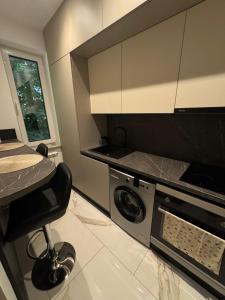 Featuring a private entrance, this apartment also consists of 1 separate bedroom, 1 bathroom with a shower, a kitchen and a dining area. Meals can be prepared in the kitchen, which is equipped with a stovetop, a refrigerator, kitchenware and an oven. Boasting a balcony, this apartment also provides a washing machine, soundproof walls and a flat-screen TV with streaming services. V této ubytovací jednotce je k dispozici 1 postel.