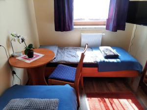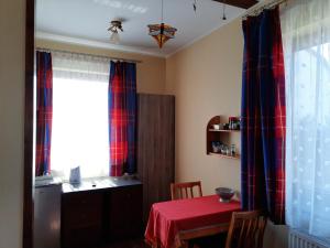 The apartment comes with 2 bedrooms, 1 bathroom, bed linen, towels, a flat-screen TV with satellite channels, a dining area, a fully equipped kitchenette, and a terrace with garden views. Apartament Wakacyjny includes an outdoor dining area.