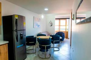 The spacious apartment is equipped with 4 bedrooms, 2 bathrooms, bed linen, towels, a flat-screen TV with streaming services, a dining area, a fully equipped kitchen, and a terrace with mountain views. Guests at the property can enjoy a meal in the outdoor dining area with city views. Apartamento 402 - Terraza con Jacuzzi - 3 Habitaciones - Rentas Cortas Gerencial is non-smoking and soundproof.