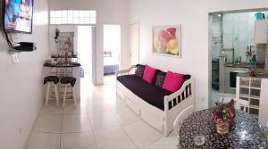 El apartamento Apartamento com bar Av Copacabana 479 ap 201 tiene aire acondicionado, 2 dormitorios, sala de estar, cocina con nevera y cafetera, y 1 baño con ducha y artículos de aseo gratuitos. Apartamento com bar Av Copacabana 479 ap 201 incluye TV de pantalla plana por cable.