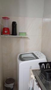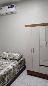 Das klimatisierte Apartamento Completo e Centralizado 4 umfasst 1 separates Schlafzimmer, ein Wohnzimmer, eine voll ausgestattete Küchenzeile sowie 1 Badezimmer.