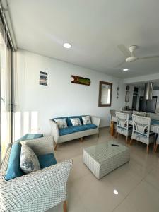 Apartmán ubytování nabízí 3 ložnice, 2 koupelny, ložní prádlo, ručníky, TV s plochou obrazovkou, jídelní kout a plně vybavenou kuchyň. Z balkonu ubytování Apartamento completo en Club de Playa en Santa Marta se nabízí výhled na moře. Koupelna je vybavená sprchou.