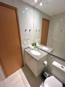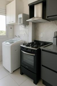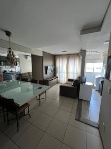 Apartmán Apartamento de Luxo com Suíte, Academia, Piscina e Mercado poskytuje 3 ložnice, 2 koupelny, ložní prádlo, ručníky, satelitní TV s plochou obrazovkou, jídelní kout a plně vybavenou kuchyň. Z balkonu ubytování ubytování se nabízí výhled na město. V koupelně ubytování Apartamento de Luxo com Suíte, Academia, Piscina e Mercado nechybí sprcha ani fén.