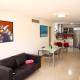 Diese Ferienwohnung mit Klimaanlage ist versehen mit 1 Schlafzimmer, Flachbild-TV und einer Küche mit einem Kühlschrank und einer Mikrowelle