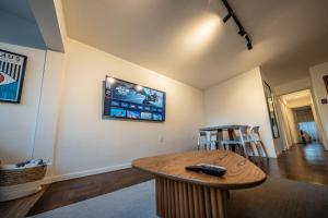 Apartmán v ubytování má 1 ložnici, 1 koupelnu, ložní prádlo, ručníky, kabelovou TV s plochou obrazovkou, plně vybavenou kuchyň a balkon s výhledem na město. Klimatizovaný apartmán Apartamento en Punta Carretas zahrnuje posezení, pračku a koupelnu s fénem.