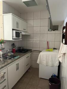 Tento apartmán má terasu, 1 ložnici, obývací prostor a kuchyň s dobrým vybavením včetně lednice a varné desky. Vybavení Apartamento Mobiliado com Área de Lazer zahrnuje TV s plochou obrazovkou.