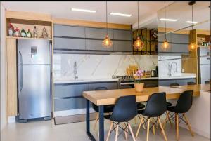 Diese 3-Zimmer-Wohnung im Apartamento Palmas 3 Quartos ist mit einem Flachbild-TV, Klimaanlage und einem Wohnzimmer ausgestattet. Die Küche ist eingerichtet mit einer Minibar.