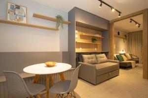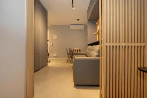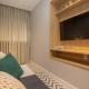 Este apartamento tiene aire acondicionado y cuenta con 1 dormitorio, TV, zona de comedor, cocina con nevera y sala de estar.