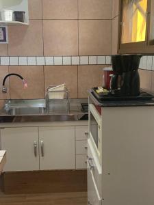 L'appartamento presso Apartamento 1 quadra da praia! dispone di balcone, 1 camera da letto, soggiorno e cucina attrezzata. Apartamento 1 quadra da praia! offre un parcheggio privato senza costi aggiuntivi.