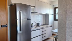 Apartmán ubytování poskytuje 1 ložnici, 1 koupelnu, ložní prádlo, ručníky, kabelovou TV s plochou obrazovkou, jídelní kout a plně vybavenou kuchyň. Z terasy ubytování Apartamento Quarto e Sala, varanda, vista mar com infraestrutura se otevírá výhled na město. Koupelna je vybavená sprchou.