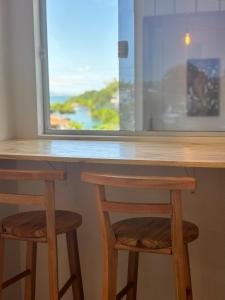 Das Apartamento Rio da Barra 2 bietet eine klimatisierte Unterkunft mit 1 Schlafzimmer, Flachbild-TV, Küche mit Kühlschrank und Mikrowelle sowie Handtüchern und Bettwäsche.