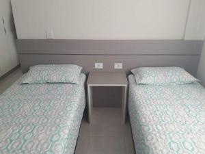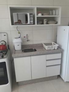 Diese klimatisierte Ferienwohnung im Apartamento tranquilo para sua estadia verfügt über 1 Schlafzimmer, einen Flachbild-TV und eine Küche.