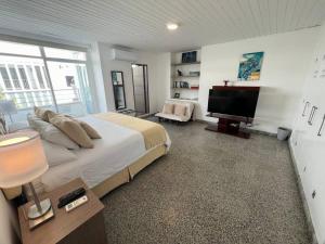 Apartamento VIP a 1 cuadra de playas y peatonal offers spacious air-conditioned rooms with flat-screen cable TV and fully furnished kitchens. There are seating areas with touches of contemporary design and vibrant colour. All rooms have private bathrooms with showers and hot running water.