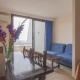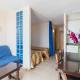 The large Eurhostal studios have sleeping and living areas, divided by a curtain. All have a balcony, a TV, a double sofa bed and a kitchenette with a fridge. There is also a private bathroom.