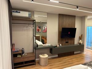 Featuring a private entrance, this air-conditioned apartment comprises 1 living room, 1 separate bedroom and 2 bathrooms with a shower and a hairdryer. Meals can be prepared in the well-fitted kitchen, which comes with a stovetop, a refrigerator, kitchenware and a microwave. This apartment features a washing machine, a dining area, a flat-screen TV with cable channels and a balcony. The unit offers 2 beds.