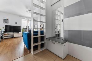 The kitchenette features a stovetop, a dishwasher and an oven. The apartment features a washing machine, a coffee machine, a dining area, a wardrobe and a flat-screen TV. The unit has 1 bed.