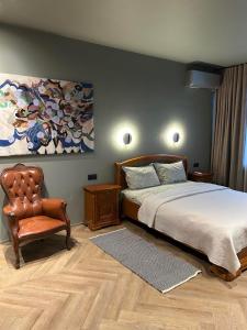 This spacious and modern studio apartment features air conditioning, a fully equipped kitchen, a sofa bed, dining area, and a private bathroom with a shower.