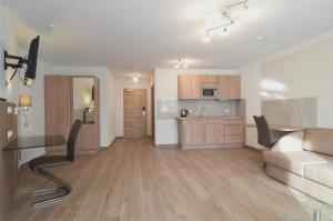 Aparthotel Donaustern má prostorné pokoje zařízené v klasickém stylu. Mají posezení, kabelovou TV, balkon a vlastní koupelnu.