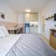 In jeder Wohneinheit gibt es eine voll ausgestattete Küche mit einem Esstisch, einen Flachbild-TV mit Satellitenkanälen sowie ein eigenes Badezimmer mit einer Dusche, kostenlosen Pflegeprodukten und einem Haartrockner. Es gibt einen Kühlschrank, eine Mikrowelle, eine Herdplatte sowie einen Wasserkocher.