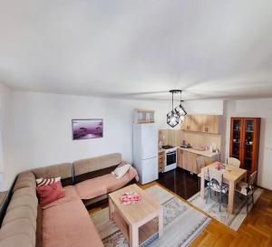 - Small kitchen area,
