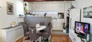 The fireplace is the standout feature of this apartment. Boasting a private entrance, this air-conditioned apartment features 1 living room, 1 separate bedroom and 2 bathrooms with a shower and a bidet. Guests will find a stovetop, a refrigerator, a dishwasher and kitchenware in the well-fitted kitchen. The apartment also comes with a barbecue. Featuring a terrace with sea views, this apartment also features a washing machine and a flat-screen TV with cable channels. The unit has 2 beds.