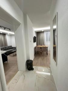 - Small kitchen area,