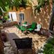 The apartment comprises a living room with a seating area and a flat-screen TV, as well as a fully equipped kitchen with a dining table. The bathroom is fitted with a shower and includes free toiletries.