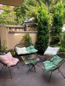 The apartment's kitchen is available for cooking and storing food. The spacious air-conditioned apartment offers a flat-screen TV, a washing machine, a private entrance, a minibar as well as garden views. The unit has 6 beds.