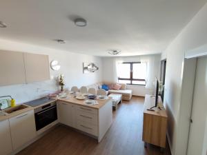 Featuring a private entrance, this air-conditioned apartment is comprised of 1 living room, 2 separate bedrooms and 1 bathroom with a walk-in shower and a hairdryer. Guests can make meals in the kitchen that is fitted with a stovetop, a refrigerator, a dishwasher and kitchenware. Boasting a balcony with sea views, this apartment also offers a washing machine and a flat-screen TV with satellite channels. The unit offers 4 beds.