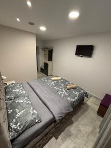 Comprenant 1 chambre et 1 salle de bains, cet appartement compte une télévision à écran plat.