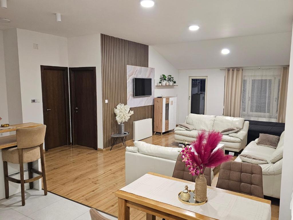 Apartmán Apartman Teo Banja Luka poskytuje 1 ložnici, 1 koupelnu, ložní prádlo, ručníky, satelitní TV s plochou obrazovkou, jídelní kout a plně vybavenou kuchyň. Z terasy ubytování ubytování se otevírá výhled na město. Koupelna je vybavená sprchou a k dispozici je také fén a župany.