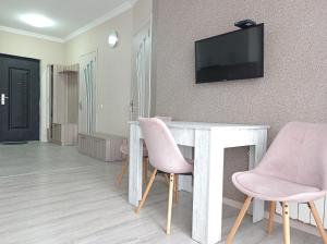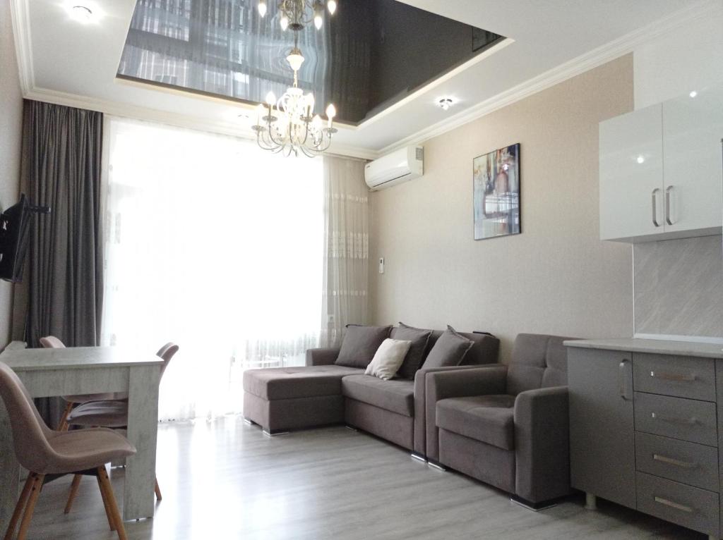 El apartamento de 2 dormitorios en Apartment on Selima Khimshiashvili 32 ofrece TV de pantalla plana, aire acondicionado y sala de estar.