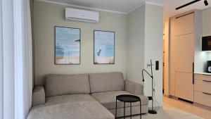 Meals can be prepared in the kitchen, which features a stovetop, a refrigerator, a dishwasher and kitchenware. The air-conditioned apartment features a flat-screen TV, a washing machine, a tea and coffee maker, a seating area as well as sea views. The unit has 2 beds.