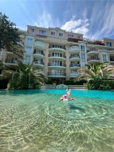 This apartment features a private pool and a hot tub. Boasting a private entrance, this air-conditioned apartment includes 1 living room, 1 separate bedroom and 1 bathroom with a shower and a hairdryer. The well-fitted kitchen has a stovetop, a refrigerator, kitchenware and an oven. The apartment offers a flat-screen TV with cable channels, a washing machine, soundproof walls, executive lounge access as well as garden views. The unit has 2 beds.