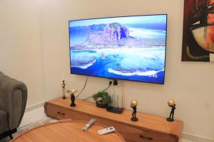 The apartment's kitchen, which features a refrigerator and a microwave, is available for cooking and storing food. This apartment has air conditioning, a tiled floor and a flat-screen TV. The unit has 2 beds.