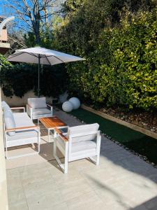 Featuring a private entrance, this apartment consists of 1 living room, 1 separate bedroom and 1 bathroom with a bath and a hairdryer. Guests can make meals in the kitchenette that is equipped with a stovetop, a refrigerator, kitchenware and an oven. Boasting a terrace with garden views, this apartment also provides a tea and coffee maker and a flat-screen TV. The unit offers 2 beds.