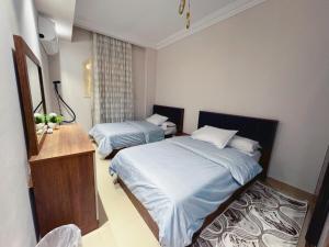 Apartmán Apartment in Sheikh Zayed-3 mins from Arkan, Egypt zahrnuje 1 ložnici, TV s plochou obrazovkou a kuchyň.