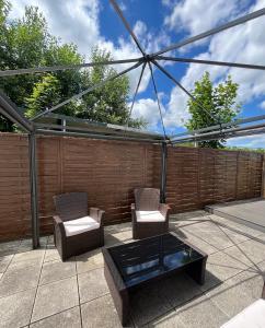The spacious apartment features a shared bathroom, a private entrance, a coffee machine, as well as a seating area with a flat-screen TV. Guests can make meals in the kitchen that is equipped with a stovetop, a refrigerator, a dishwasher and kitchenware. The apartment provides a dining area, a wardrobe, as well as a terrace and a patio. The unit offers 3 beds.