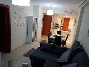 Questo appartamento con aria condizionata comprende 3 camere da letto, un soggiorno, una cucina con utensili, frigorifero e macchina da caffè, e 2 bagni con bidet e asciugacapelli. Presso Apartment in Marina Rey Complex la dotazione include lenzuola e asciugamani.