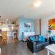 W apartamencie z 2 sypialniami zapewniono salon z telewizorem z dostępem do kanałów kablowych, kuchnię z pełnym wyposażeniem, w tym lodówką i zmywarką, a także łazienkę (1) z prysznicem.