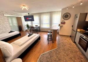 This apartment comes with 1 living room, 2 separate bedrooms and 1 bathroom with a shower and free toiletries. The well-fitted kitchen has a stovetop, a refrigerator, a dishwasher and kitchenware. The apartment features parquet floors, a seating area with a flat-screen TV, a washing machine, a tea and coffee maker as well as city views. The unit has 3 beds.