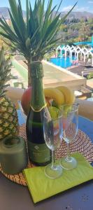 Guests will have a special experience as this apartment offers a pool with a view. Featuring a private entrance, this air-conditioned apartment is comprised of 1 living room, 1 separate bedroom and 1 bathroom with a bath and a hairdryer. Meals can be prepared in the kitchen, which is fitted with a refrigerator, a microwave and a toaster. The unit features a coffee machine, garden views, a terrace and wine/champagne is featured for guests. The unit offers 2 beds.